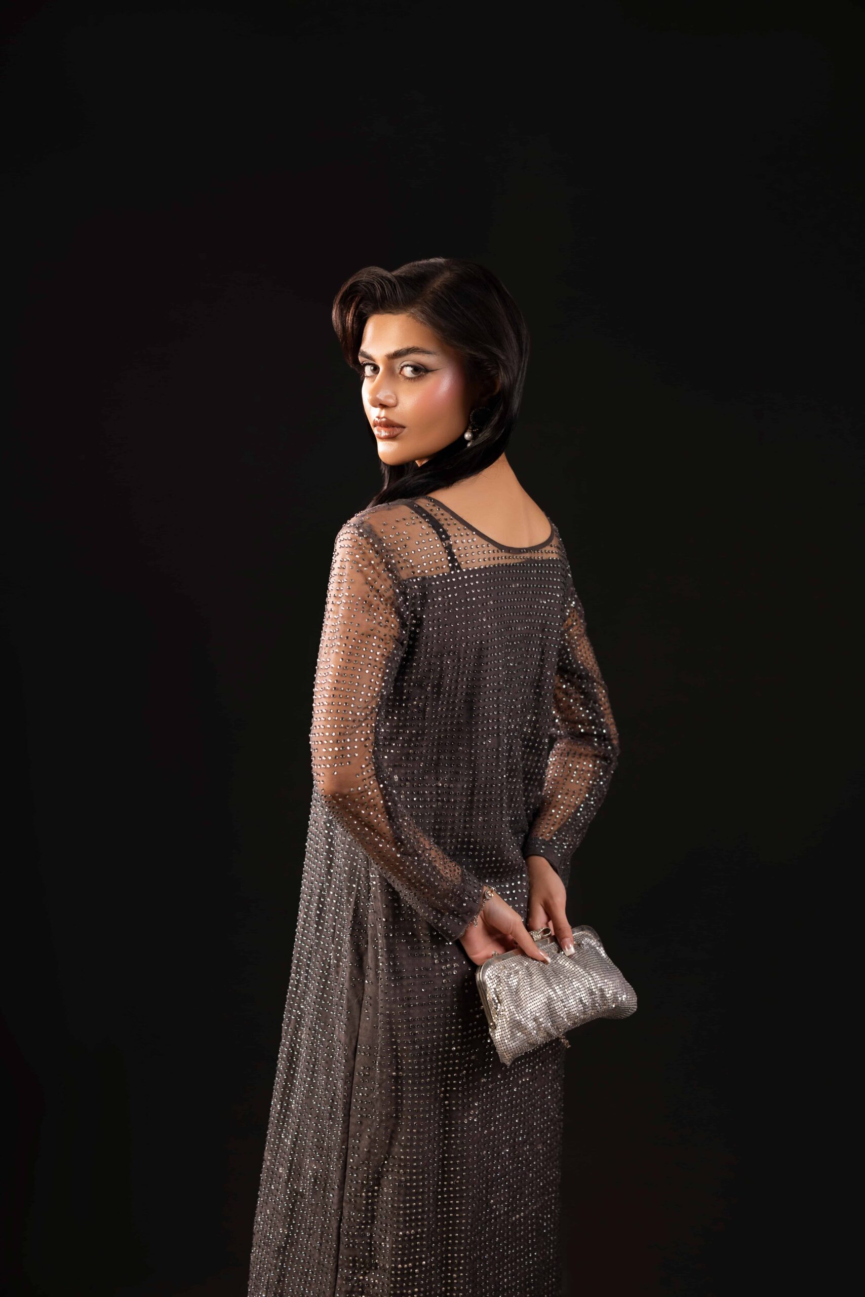 Shirt: breeze net shirt all over stone work on front back sleeves and handwork embellishments borders on shirt daman