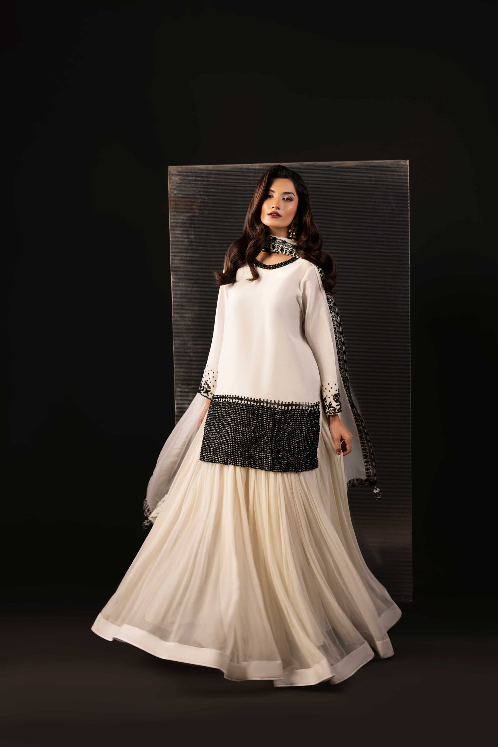 Crafted this mustured pishwas features extra flair that enhance its volume and movement, patch this Embroidey border all over the flair and waist line creating a fluid and expensive silhouette its is paired with a organza lining shawal with four sides borders and boti in all over and framed by four sides with dark Marron velvet adds the perfect finishing touch.